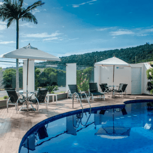 Opção um pouco mais em conta. Fica a 2 quarteirões da Praia Central de Balneário Camboriú, também na Barra Norte. Cerca de 25 minutos de Uber da Igreja e do hotel da festa.